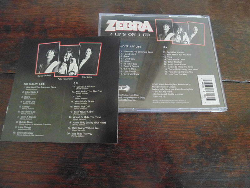 Zebra CD, No Tellin Lies & 3.V, 2 LPs on 1 CD, 2001 One Way Records, Remastered